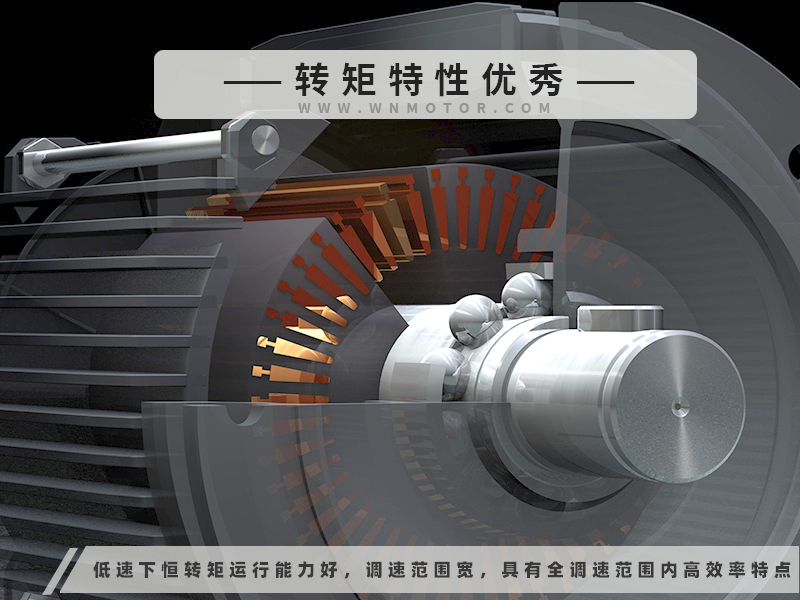 特點:具有外形美觀、低噪聲、低振動、低溫升、低速下恒轉(zhuǎn)矩運行能力好,調(diào)速范圍寬,全調(diào)速范圍內(nèi)超高效率等特點,配合WN90T系列變頻器,可滿足多種工況下穩(wěn)定運行。 | |